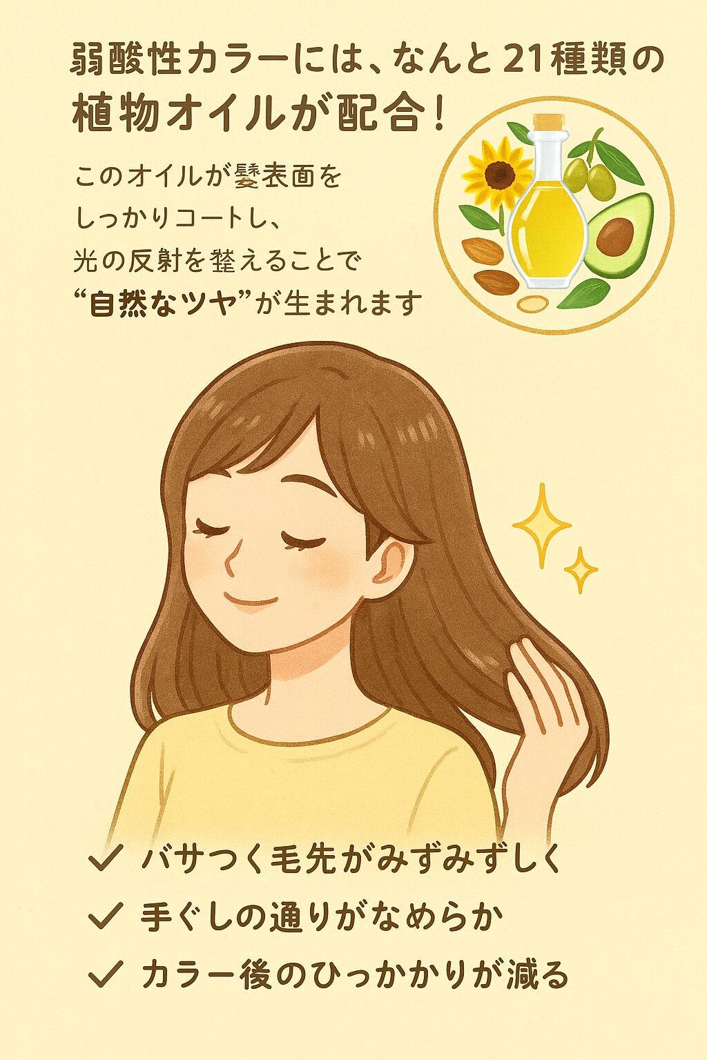 弱酸性カラーには、なんと 21種類の植物オイルが配合!