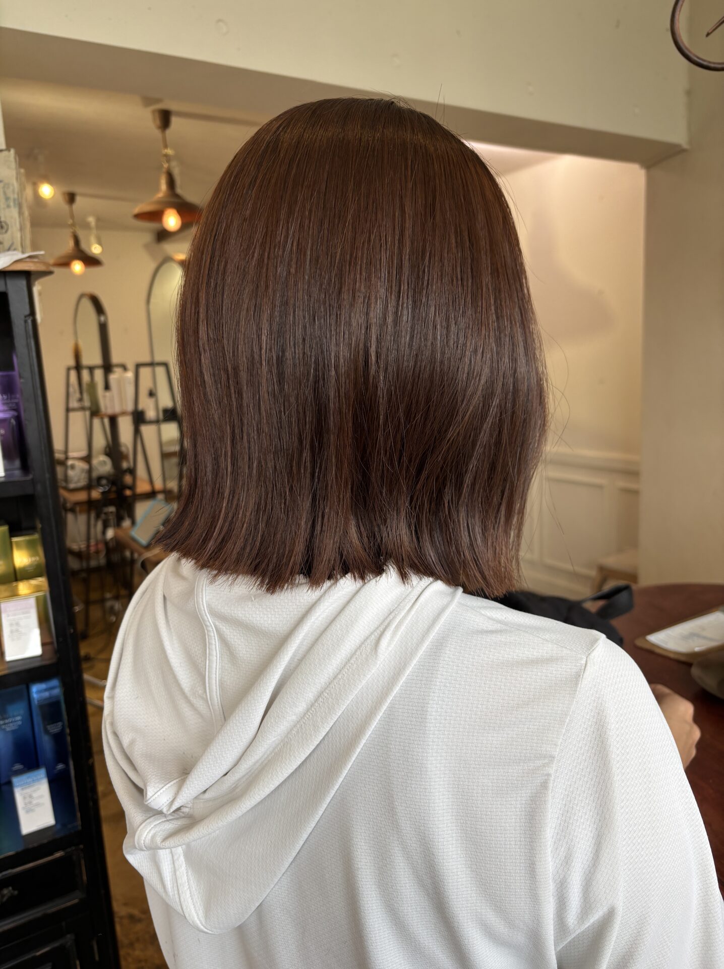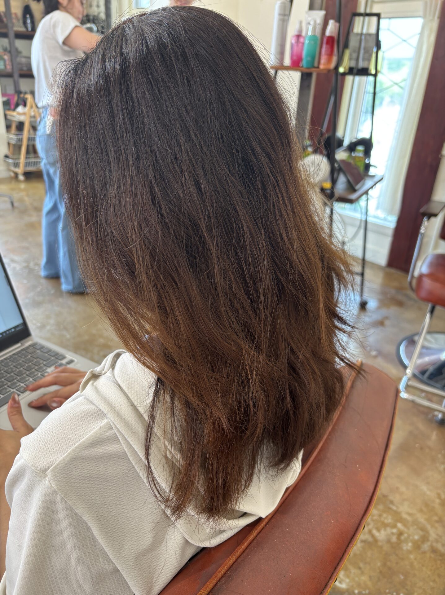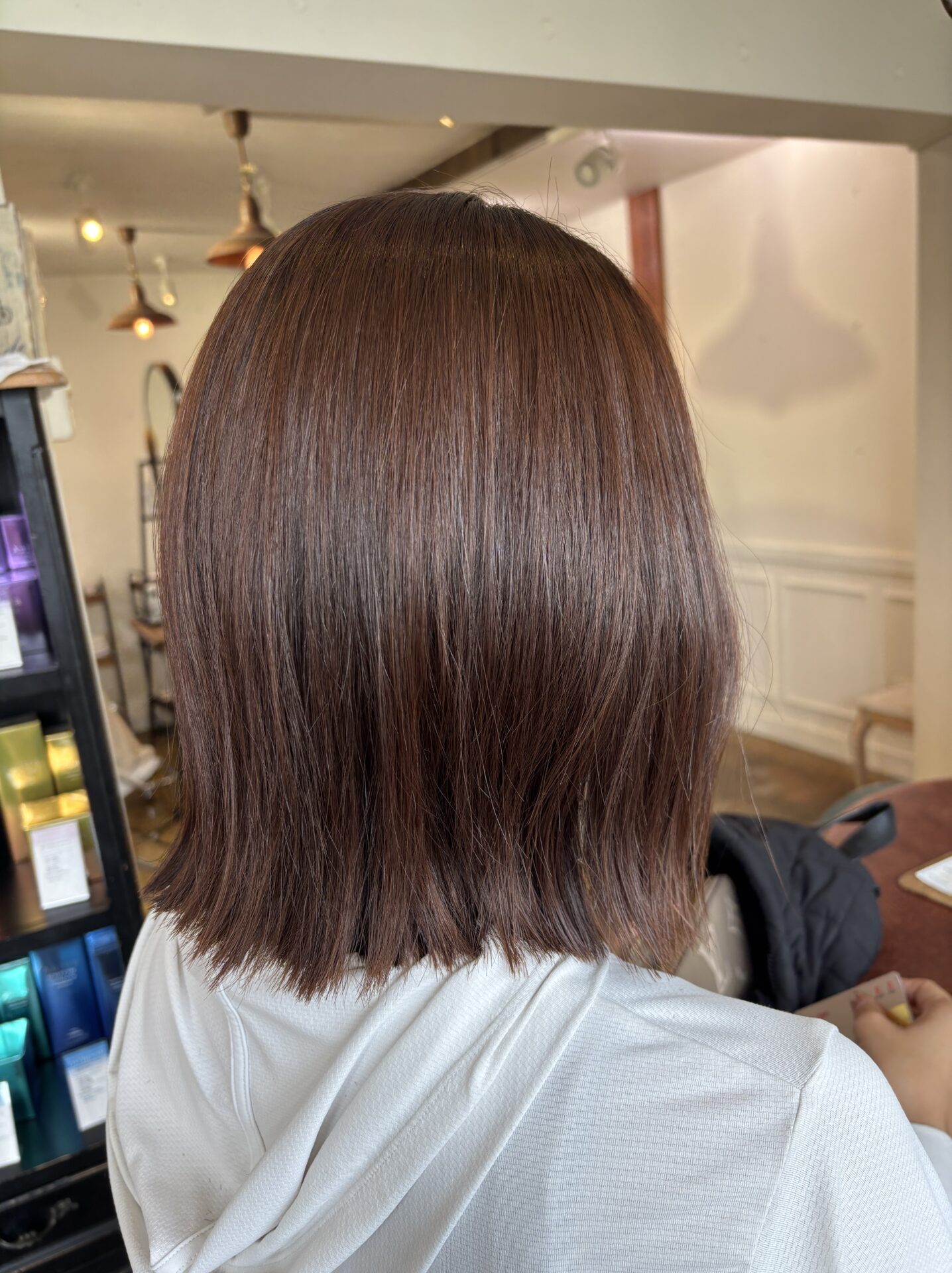 今回のように、すでにダメージと乾燥がある髪でも、負担を抑えながら施術ができるため、仕上がりの質感を大きく損なうことがありません。