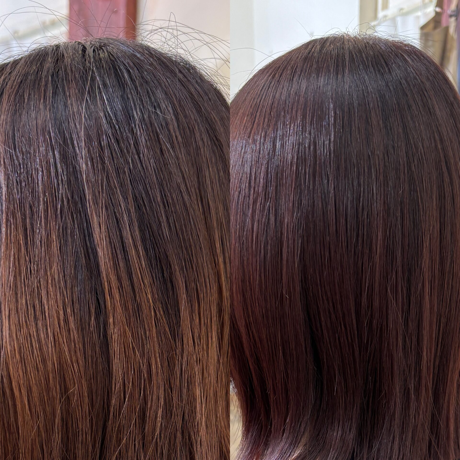 施術後の髪は、見た目の艶がしっかりと出て、手触りもなめらかに。
