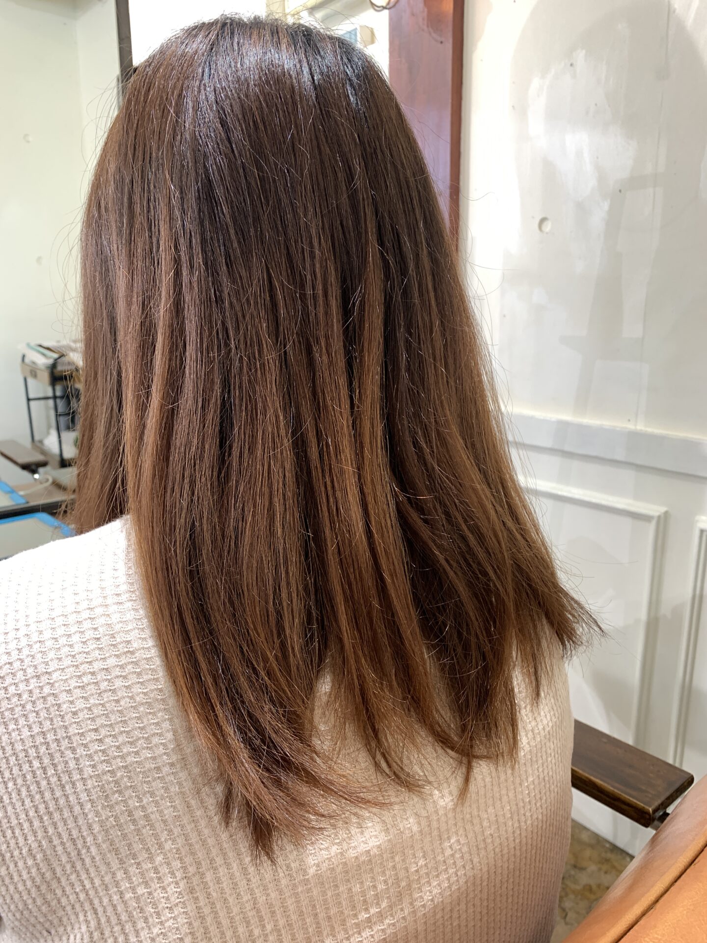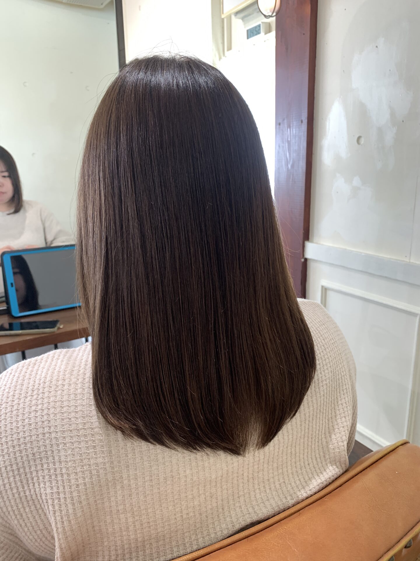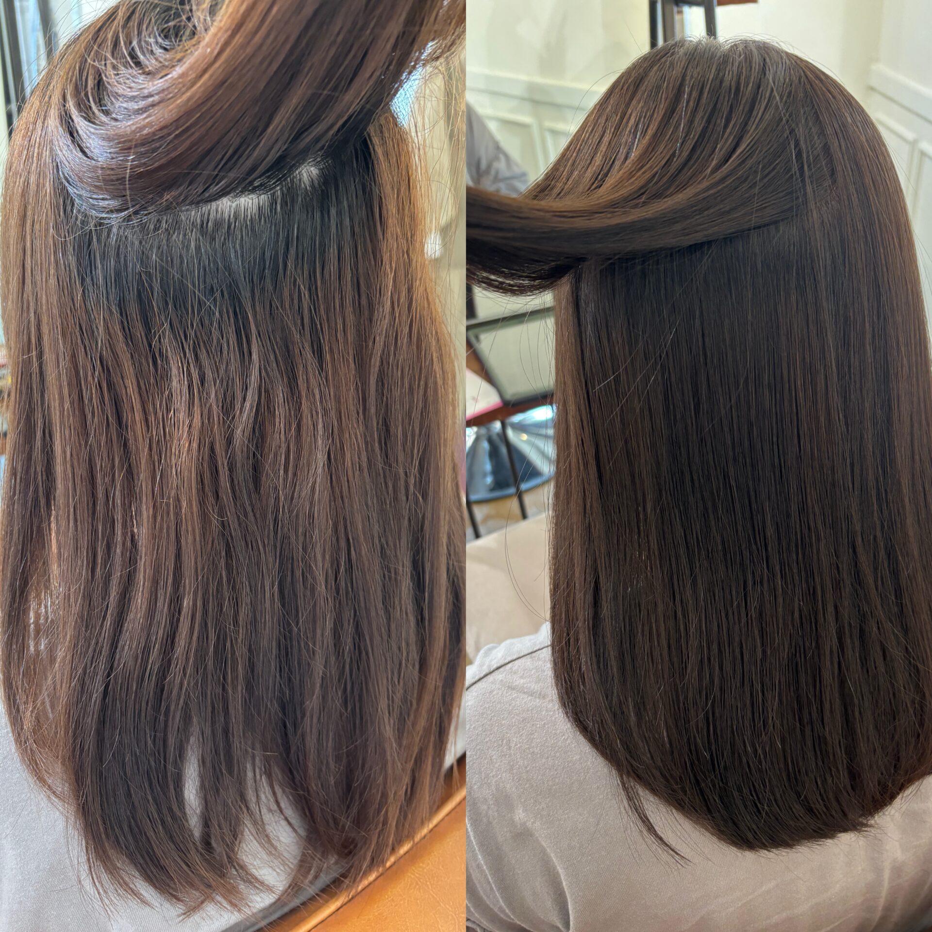 施術後の髪は、根元から毛先までしっとりとまとまり、ツヤのある自然な仕上がりになりました。