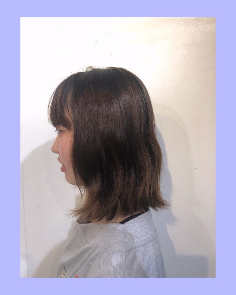 短めにしたいとのことだったんですが、顔周りをあまり出したくないとのことだったので、あごよりも少し長めに設定して、巻いてあごぐらいにくるようにしました^ ^