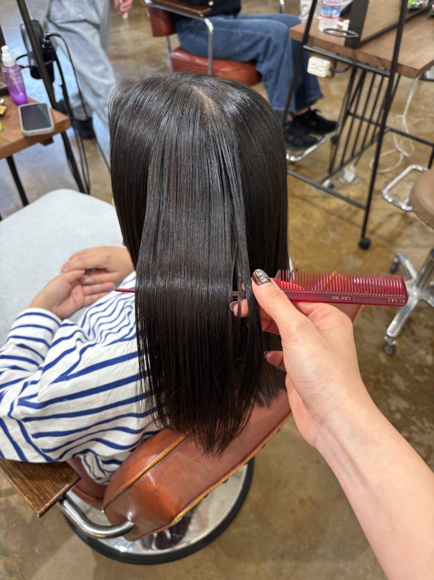 縮毛矯正は、髪内部の結合を一度切断し、再結合させることで形状を変える施術です。この工程によって、くせやうねりを根本から改善し、長期間ストレートの状態を維持することができます。