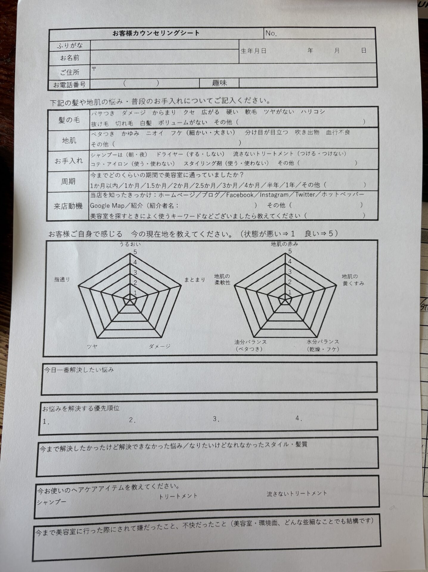 施術前には、髪のお悩みやこれまでの履歴、普段のお手入れ方法などをしっかりとヒアリングします。これにより、お客様に最適な施術プランを提案することが可能になります。