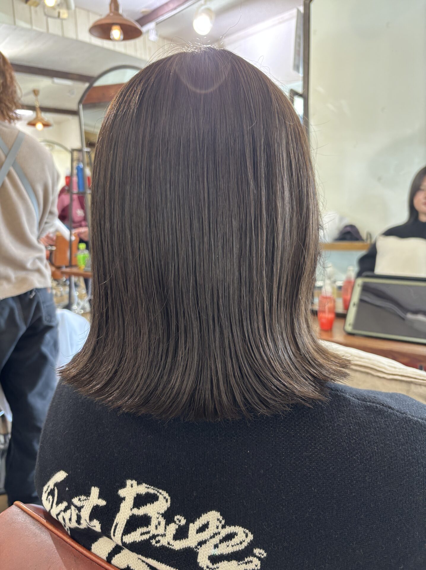 カラーは「染めた瞬間」がゴールではありません。本当に大切なのは、その後の変化です。色落ちの過程を計算してカラーを設計することで、長くキレイな状態を楽しむことができます。オリーブ系の色味を入れておくことで、褪色しても嫌なオレンジ味が出にくく、自然なベージュへと変化していきます。この“時間もデザインする”という考え方が、満足度の高いカラーにつながります。