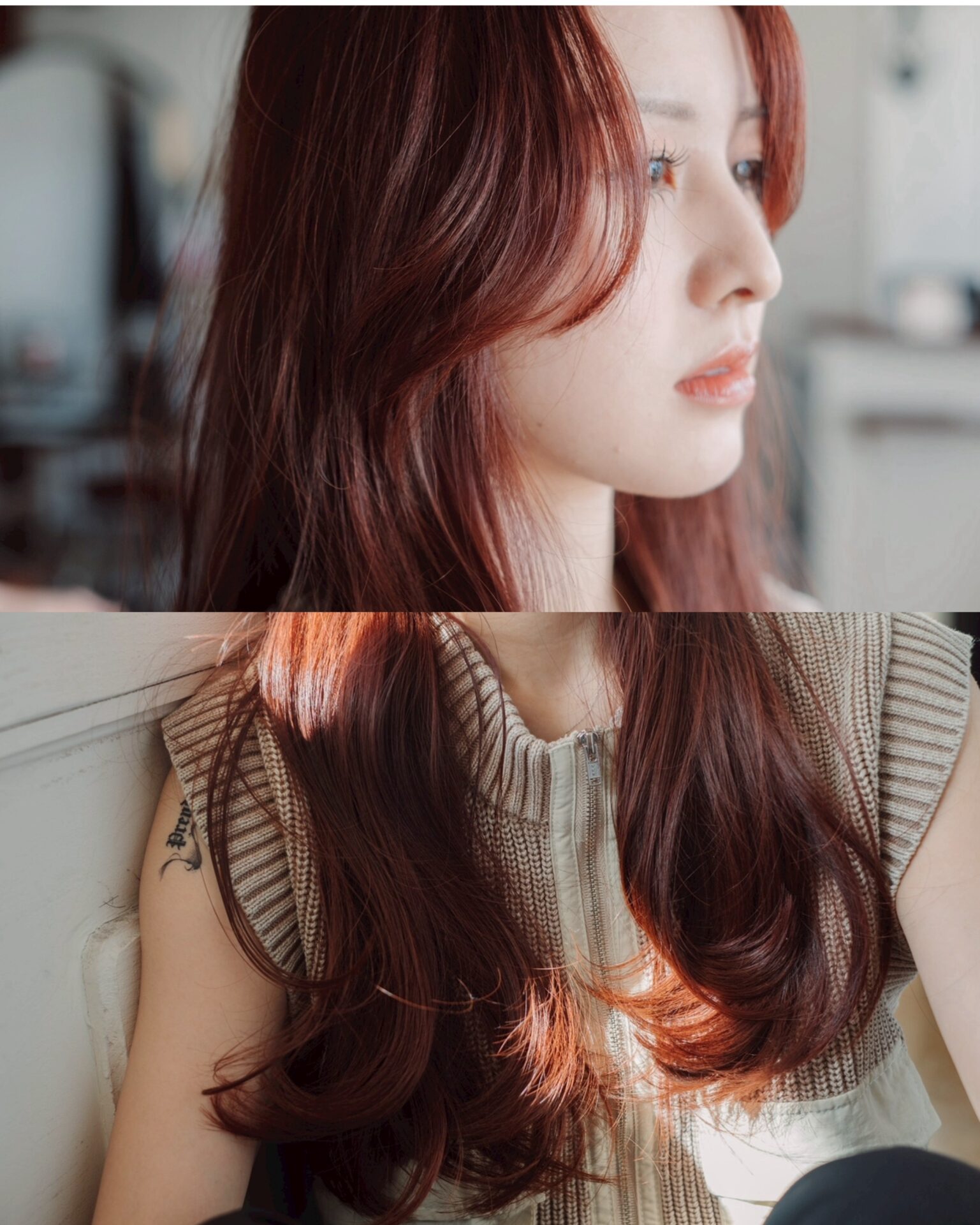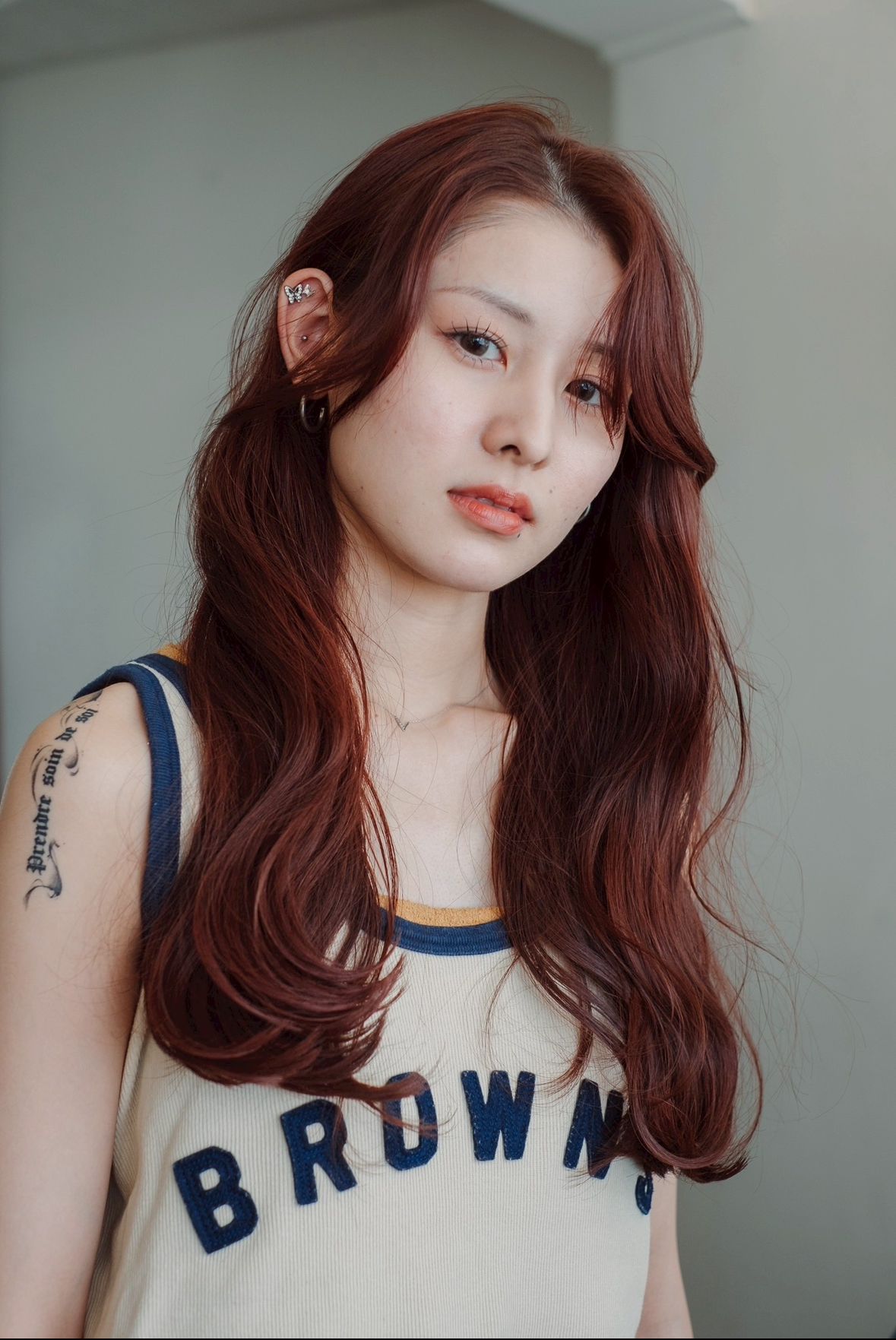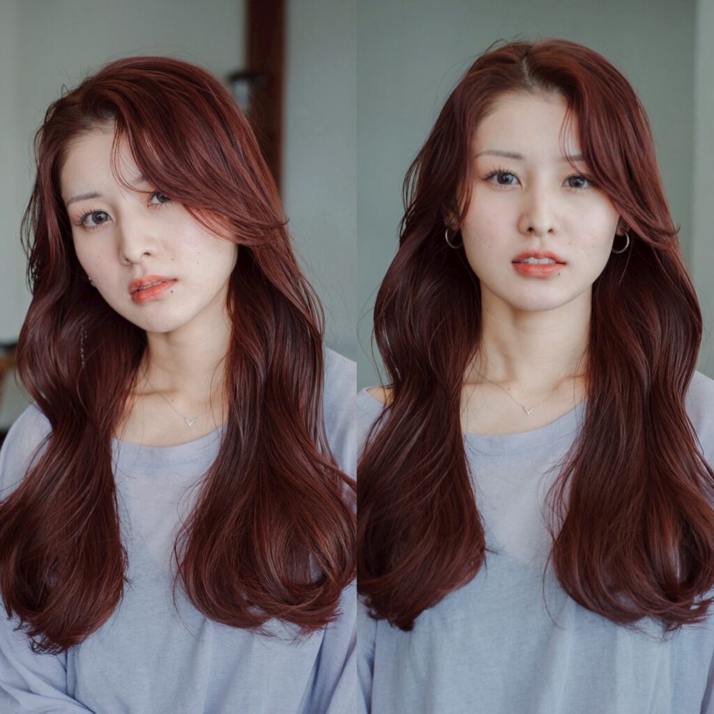 今回のスタイルは、深みと艶感が魅力のレッドブラウン暖色カラー。