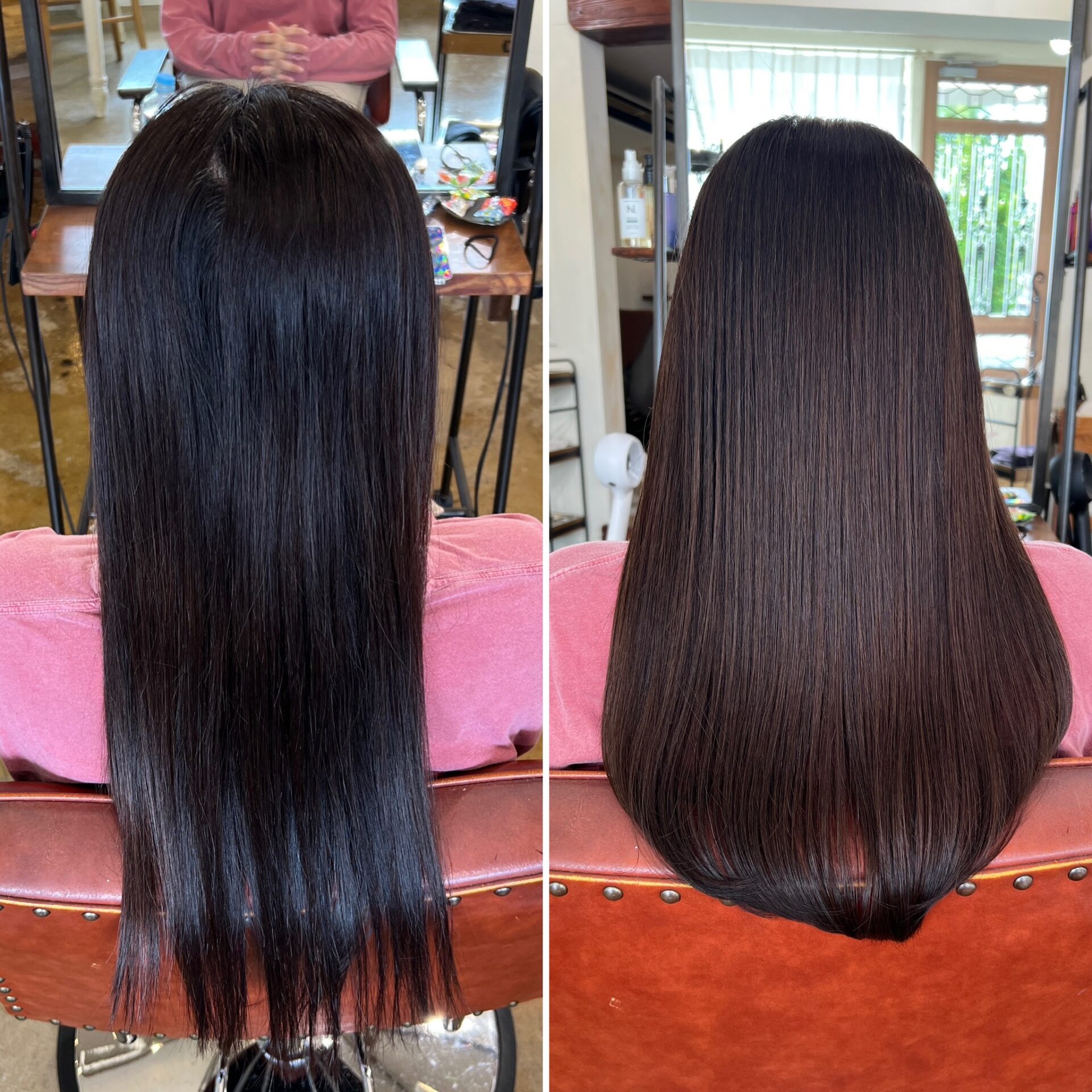 ダメージを最小限に抑えながら、まとまりのあるストレートヘアを目指せるため、カラー毛やエイジング毛の方にも向いています。