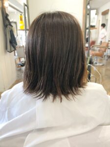 そこで弱酸性縮毛矯正ストレートをかけた後、弱酸性カラーで色味も少し落ち着かせました。